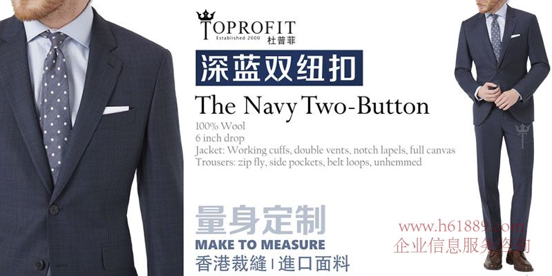 杜普菲:香港裁縫、進(jìn)口面料、量身定制、深藍(lán)雙紐扣