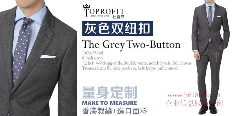 杜普菲:香港裁縫、進(jìn)口面料、量身定制、灰色雙紐扣