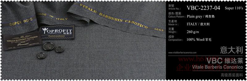 杜普菲:100%進(jìn)口面料、生產(chǎn)地:意大利、顏色圖案:純灰色、成份:100%羊毛、VBC維達(dá)菜:高級(jí)西裝面料