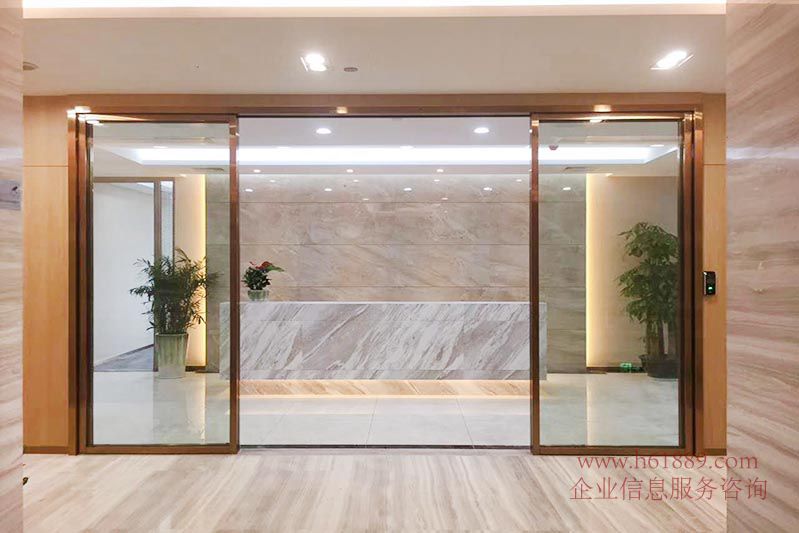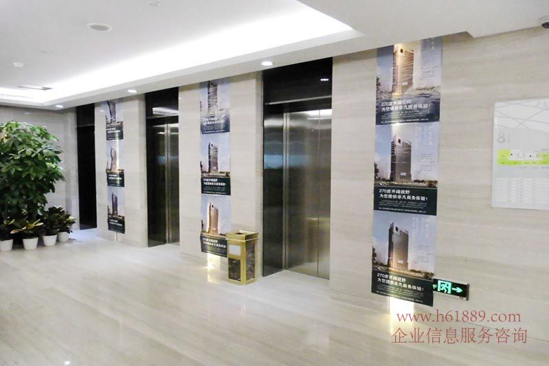 電梯口、雙開玻璃門面、前臺非常豪華大氣、展示效果非常好