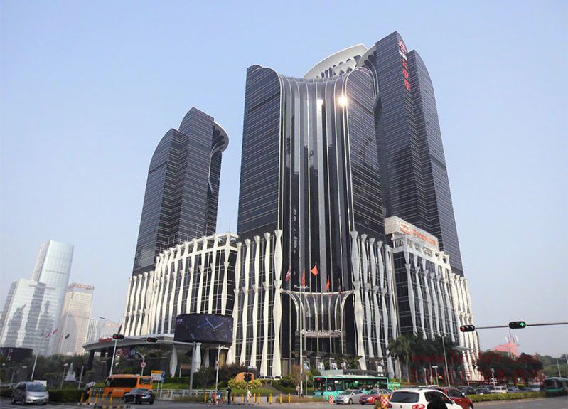 本大廈內(nèi)部空間和建筑結(jié)構(gòu)中央大廳以42.5*3.4米、無柱施工突破世界混凝土結(jié)構(gòu)柱網(wǎng)跨度、記錄有360度領(lǐng)袖視野、深圳CBD宏偉藍圖盡收眼底