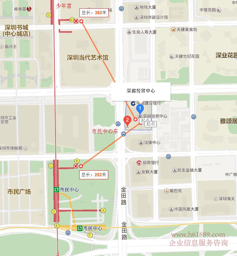 地鐵站:市民中心:地鐵2號(hào)線(蛇口線)與地鐵4號(hào)線(龍華線)交匯處、少年宮地鐵站:地鐵4號(hào)線(龍華線)與地鐵3號(hào)線(龍崗線)交匯處