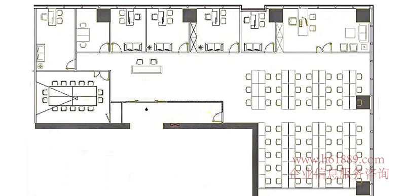 出租戶型:8個(gè)辦公室、一個(gè)廳、電梯口