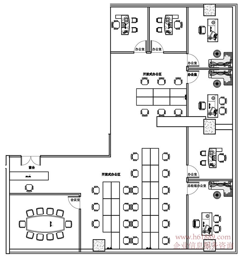 戶型朝向:6個(gè)辦公室、1個(gè)廳