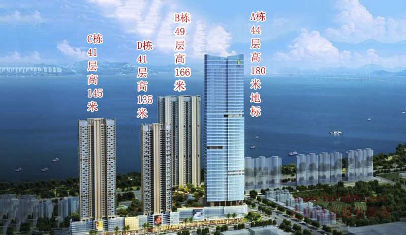 A座:公寓、酒店、辦公、44層、樓高:180米地標(biāo)