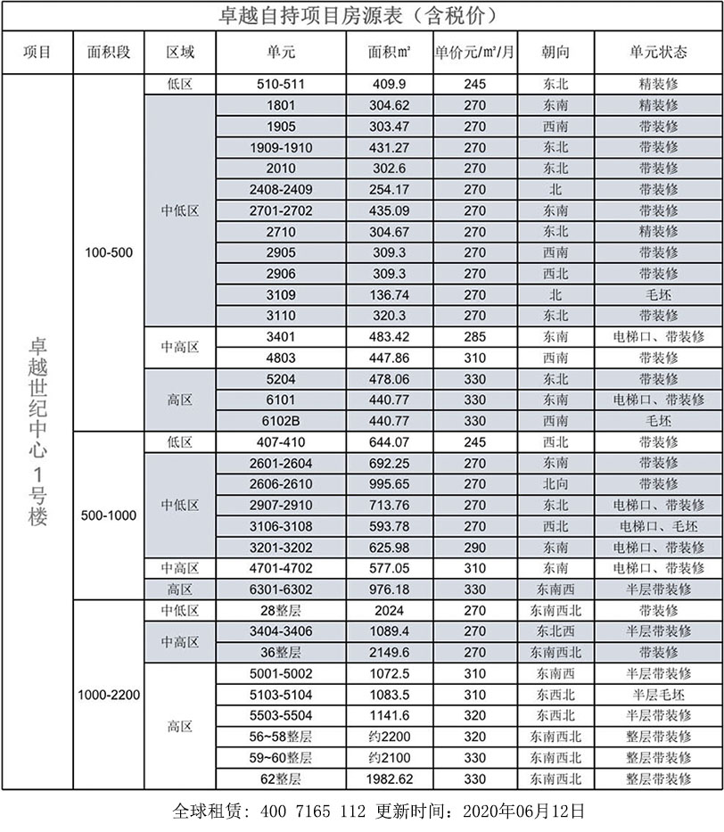 卓越自持項目房源表(含稅價)