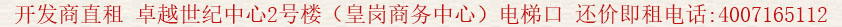 開發(fā)商直租 卓越世紀中心2號樓(皇崗商務(wù)中心)電梯口 還價即租電話