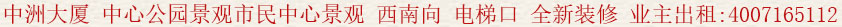 中洲大廈 中心公園景觀 市民中心景觀 西南向 電梯口 全新裝修 業(yè)主出租