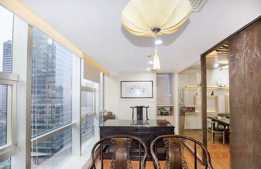 3、物業(yè)位于大廈高層、大氣的雙開玻璃門、里面有5個隔間、1大廳、東北采光、戶型方正、全辦公家私、近電梯口