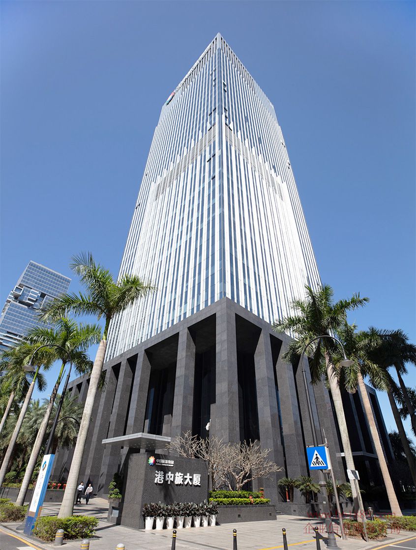 中國港中旅大廈由澳大利亞JPW建筑景觀設(shè)計事務(wù)所擔(dān)綱建筑方案設(shè)計、采用水晶體建筑形象、18米高氣派大堂、4.2米舒適的層高、頂部空中風(fēng)景花園