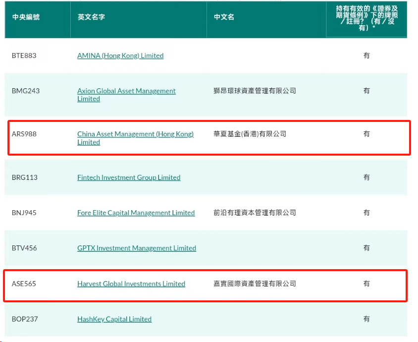 2024年4月10日:香港證監(jiān)會(huì)在官網(wǎng)更新了虛擬資產(chǎn)管理的基金公司名單,新增了嘉實(shí)國際和華夏基金(香港),意味著這些公募基金在原有的傳統(tǒng)資產(chǎn)管理業(yè)務(wù)上,新增虛擬資產(chǎn)管理業(yè)務(wù),這也是中國頭部基金公司香港子公司的首次獲批