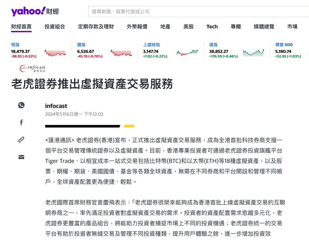 老虎證券(香港)正式推出虛擬資產(chǎn)交易服務