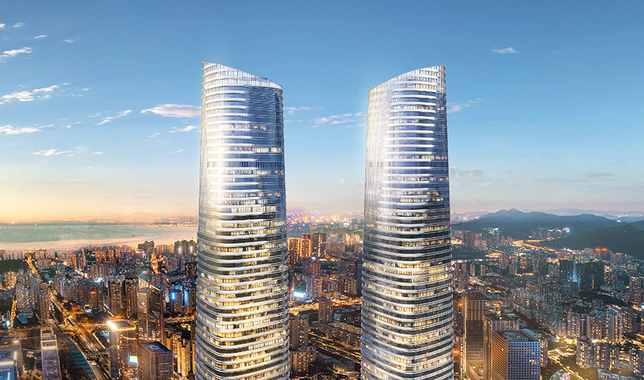 深圳市 坂田 星河雙子塔選用雙夾膠半鋼化中空LOW-E三銀超白玻璃、有效阻擋光污染、隔熱、隔音,降低能耗