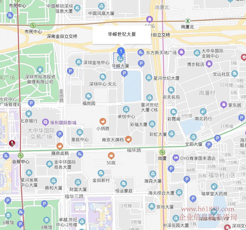 福田區(qū) 崗廈 華嶸世紀(jì)大廈 租賃中心 福田區(qū) 崗廈北地鐵站【深圳之眼】華嶸世紀(jì)大廈 交通位置圖片