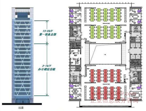 租賃面積:108㎡、138㎡、158㎡、218、228㎡、288㎡、358㎡、398㎡、428㎡、618㎡、標(biāo)準(zhǔn)層面積:約1.530㎡、和1850㎡、面積任意組合