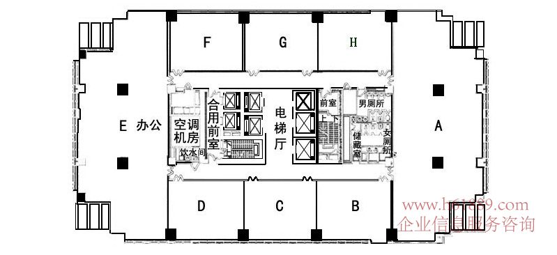 電梯布局: 6部客梯(高區(qū)/低區(qū)各3部)、2部貨梯