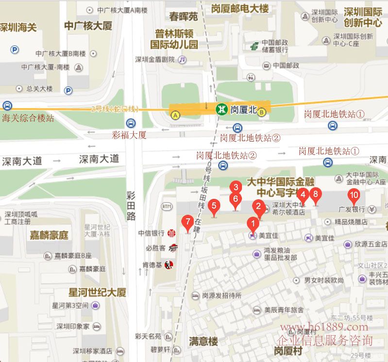 崗廈北地鐵站:深圳之眼 地鐵:2號線【蛇口線】8號線【鹽田線】10號線【坂田線】11號線【深圳地鐵機場快線】14號線【東部快線】、地鐵主干道:臨靠深南大道、彩田路、北環(huán)大道等城市主干道、靠深南大道、彩田路、北環(huán)大道等城市主干道