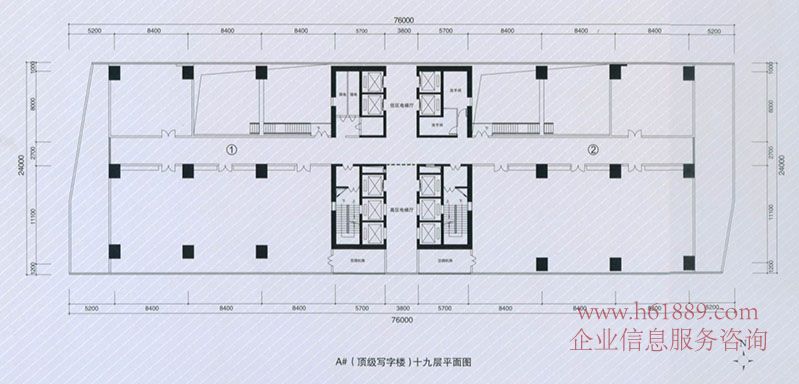 A棟:環(huán)球集團總部:43654㎡、35層、全復式、180米標高、跨國企業(yè)在中國的至高排場、位于大中華·IFC東區(qū)、全部單位為1800平方米超大復式辦公結構、深圳無出其右、僅26個席位、每層均配備總裁專屬洗手間與總裁電梯、匹配世界金融巨擘商務的至高形象