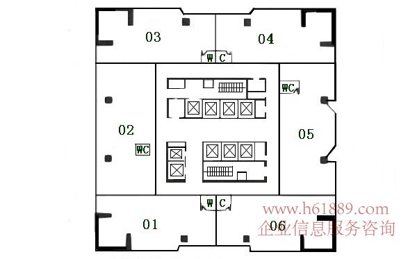 A座:1—5層商業(yè)裙樓、6-15層商務(wù)公寓(一層20個單位)、17-53層純寫字樓(一層6個或4個單位)