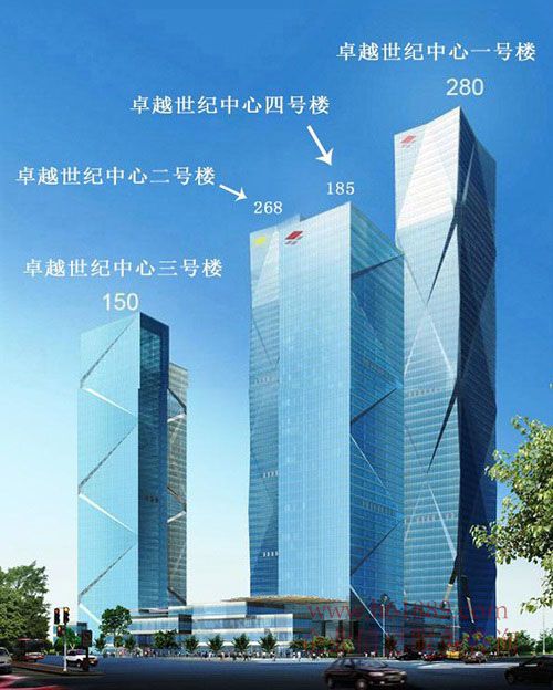 樓高:1號(hào)樓、280米。2號(hào)樓、268米。3號(hào)樓、150米。4號(hào)樓、185米