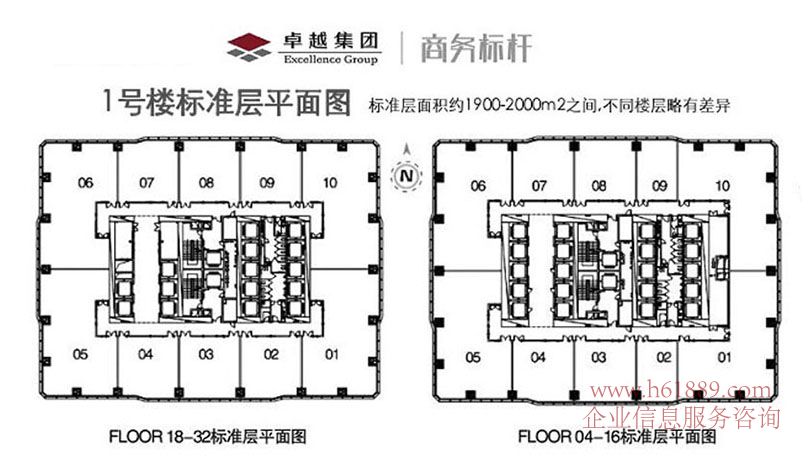 ?卓越世紀中心1號樓租售中心 卓越世紀中心1號樓簡介 卓越世紀中心1號樓 04到16層 18到32層 標準層平面圖