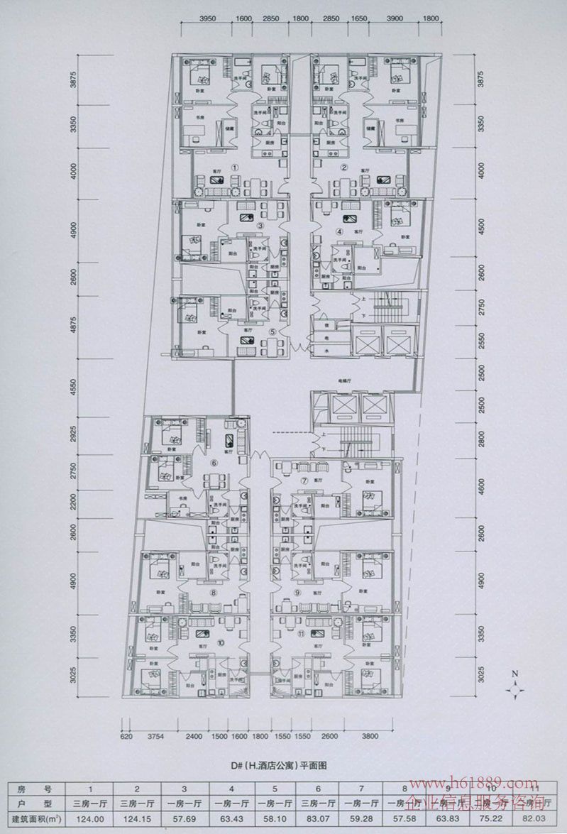 D棟(H.精品酒店公寓):22050平方米、30層、275戶酒店式公寓(60-120㎡德系豪裝總裁公寓)