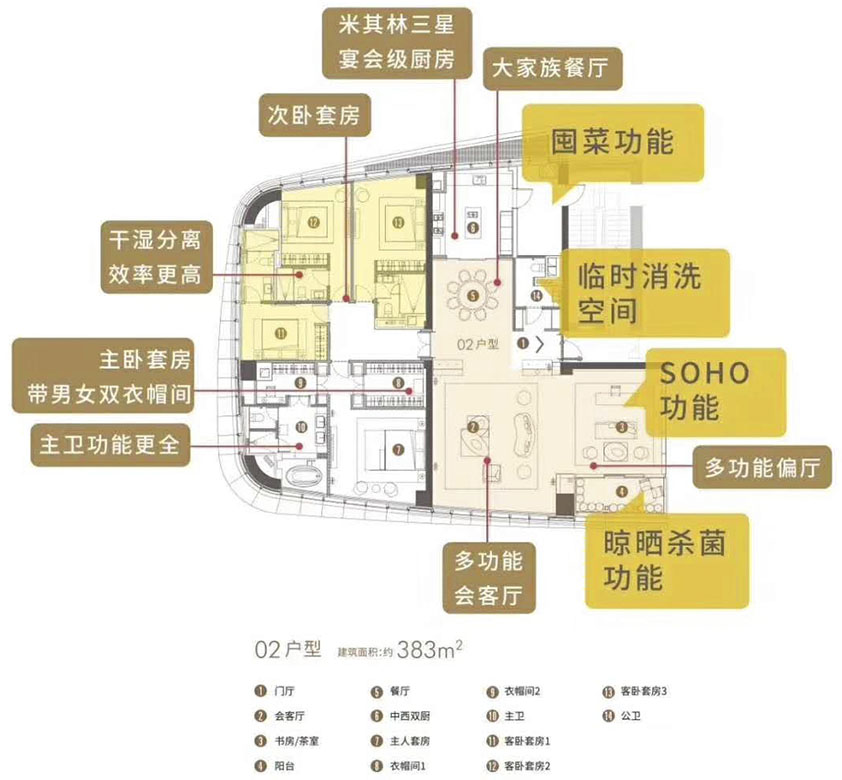 深圳中心天元:T7棟、383米王座、戶型鑒賞、三梯兩戶、近100米超奢L型聯(lián)廳、家族全套房、社交與隱私空間全分區(qū)、超七星酒店主臥套房、主仆動線有別、270度IMAX環(huán)幕視野