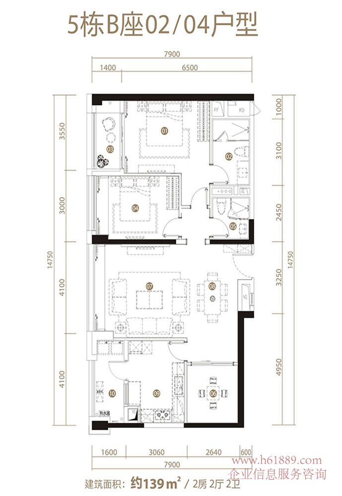 深圳中心?天元?5棟 B座01/06戶型 約:141平米 2房2廳2衛(wèi) 戶型圖片