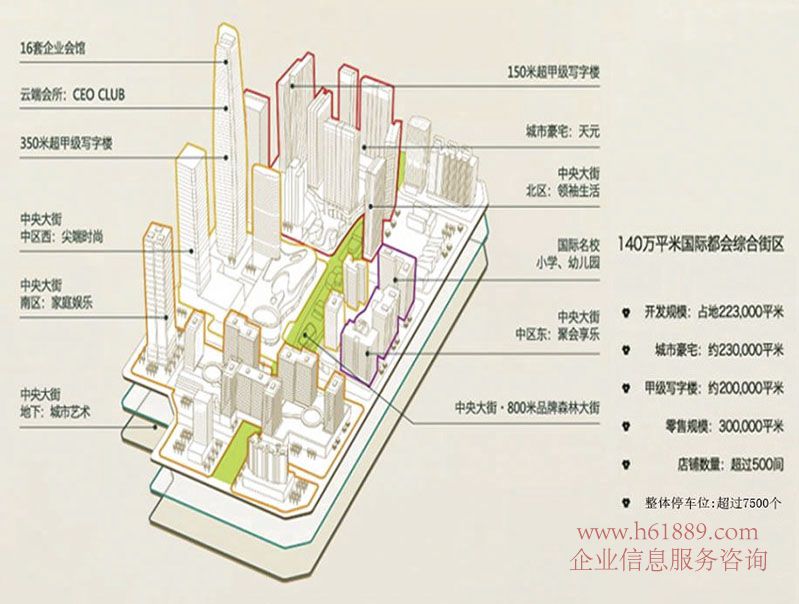深圳中心?天元:140萬平米國際都會綜合街區(qū)、開發(fā)規(guī)模:占地:223.000平米、城市豪宅:約230.000平米、甲級寫字樓:約:200.000平米、零售規(guī)模:300.000平米、店鋪數(shù)量:超過500間、整體停車位:超過7500個(gè)