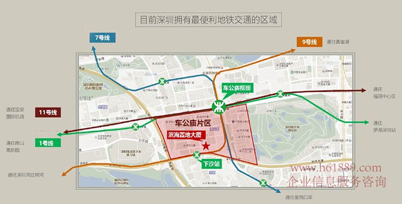 物業(yè)地址:深圳市福田區(qū)核心區(qū)域車公廟片區(qū)南部、與地鐵9號(hào)線下沙站直接相連;、5分鐘步行可抵達(dá)1、7、9、11地鐵線車公廟站