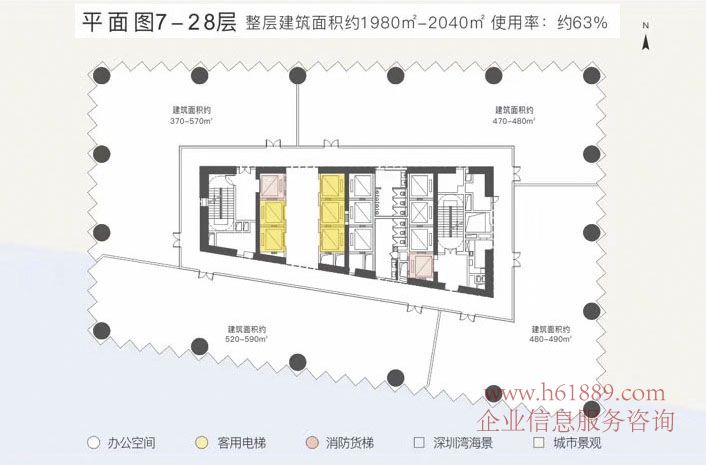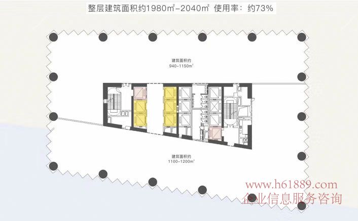 租賃面積:200㎡、275㎡、338㎡、530㎡、735、1009㎡、整層:2100㎡:多層連層:靈活組合辦公空間