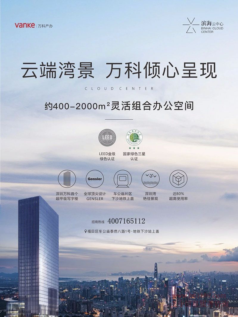 濱海云中心【萬(wàn)科濱海云中心】租賃中心電話:400 7165 112