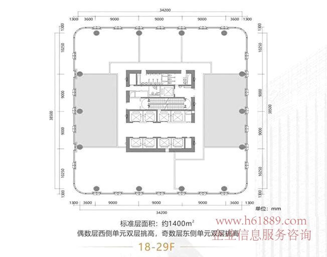 層高:每層特意設計企業(yè)大堂:層高:8.4米、東西交錯