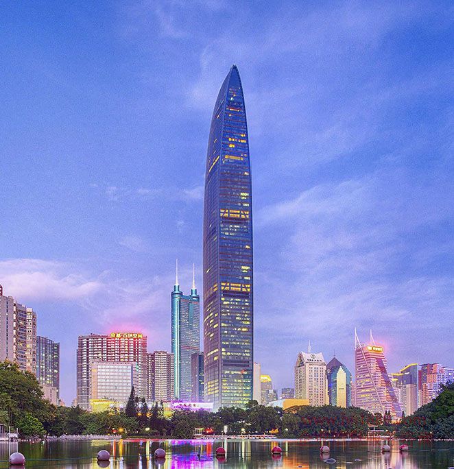 京基100大型城市綜合體項目總建筑面積602401.75m2、由京基地產(chǎn)斥資50億元打造、共100層、高度為441.8米、是世界著名的地標(biāo)性建筑