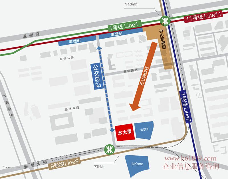 項(xiàng)目與地鐵9號(hào)線下沙站連通:標(biāo)準(zhǔn)的地鐵上蓋物業(yè)、同時(shí)、緊鄰深圳唯一的四線樞紐車公廟交通樞紐【地鐵1、7、9、11號(hào)線】直線距離僅100米左右、步行約5分鐘可達(dá)
