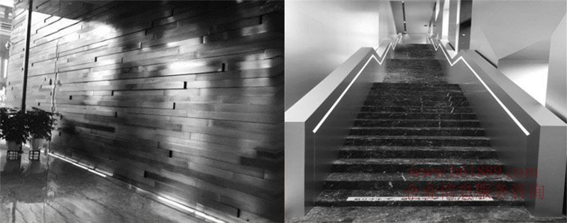 7、墻面:內(nèi)墻飾面種類繁多、石材、鋁板、不銹鋼肌理飾面等縫隙均勻、簡潔美觀