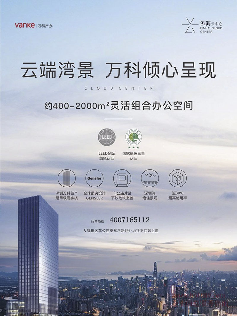 濱海云中心(萬(wàn)科濱海云中心)可租賃辦公面積約54000㎡,主力面積300-2000㎡,正在火熱招商中。