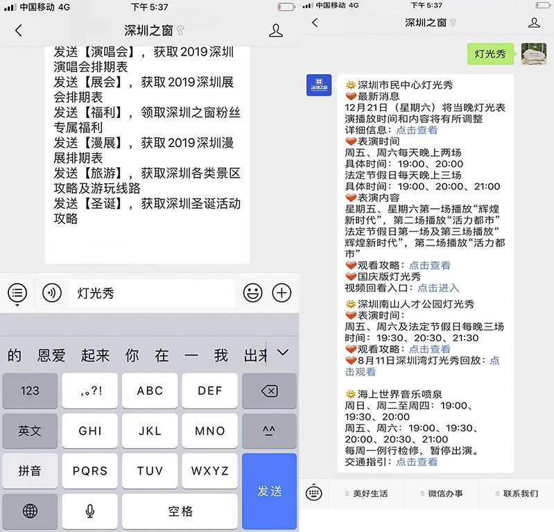 1、掃描下方二維碼,關(guān)注【深圳之窗】微信公眾號,后臺回復關(guān)鍵詞【燈光秀】,即可獲取最新燈光秀表演時間