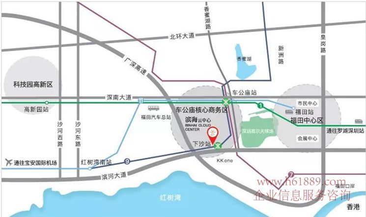 補貼30% 濱海云中心 萬科濱海云中心 福田車公廟 下沙地鐵站C出口 甲級寫字樓 出租 交通位置 圖片