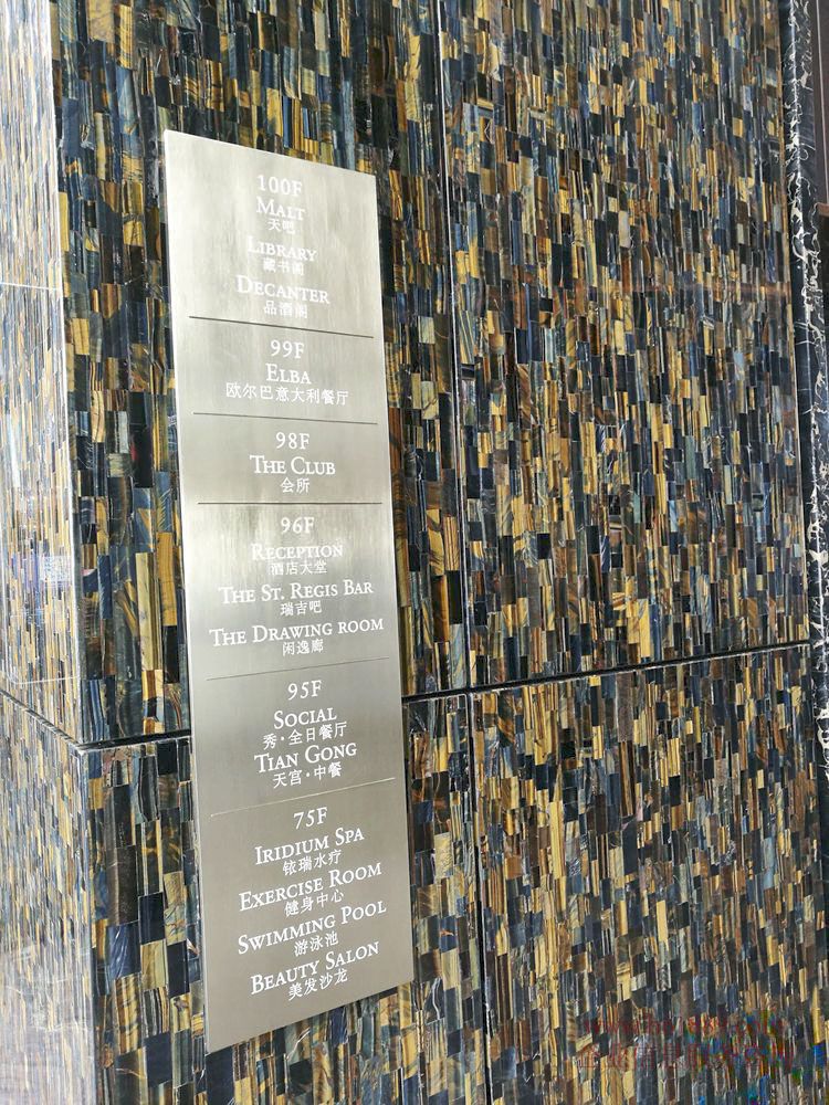 75 — 100 層是鉑金五星級瑞吉酒店所在樓層