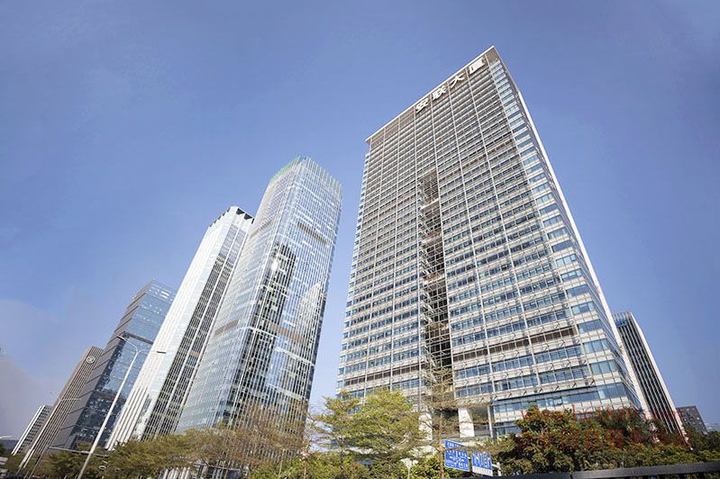 深圳罕有的純板式結(jié)構(gòu)高層建筑、恰當適中的進深和中庭旁側(cè)反光墻板設計、令更多陽光從天臺折射入中庭.使燦爛的自然光線也成為辦公的附加值、整個建筑從內(nèi)到外都沐浴在陽光中