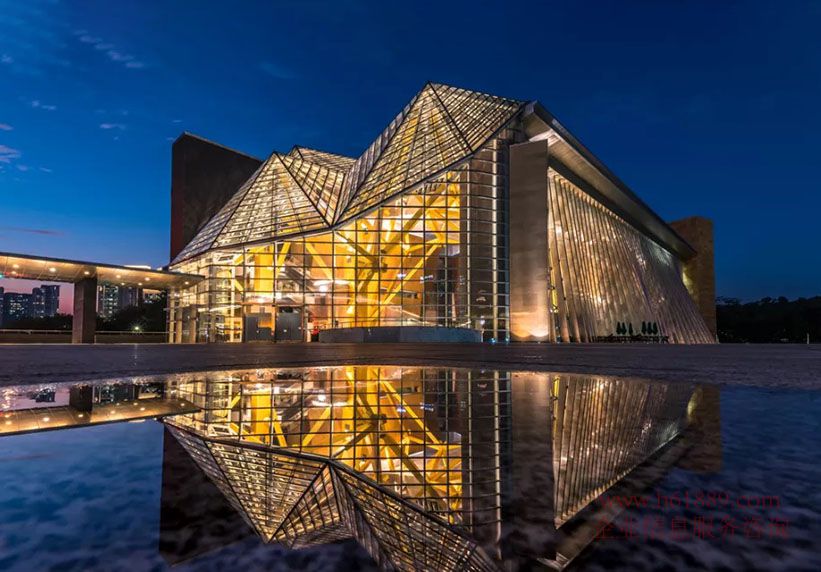 深圳音樂廳所在地與作為城市文化中心的福田。福田中心區(qū)擁有市音樂廳、市圖書館、市博物館、關山月美術館、當代藝術與城市規(guī)劃館等文化地標和市體育館等25個大型文化館。文化大多主要分布在中央CBD及其周邊,是世界城市中、公共文化設施最為集中的城區(qū)區(qū)域之一。如果用5分鐘的通行距離半徑來測算,福田中心區(qū)一定文化是資源密度最高的深圳城區(qū)。