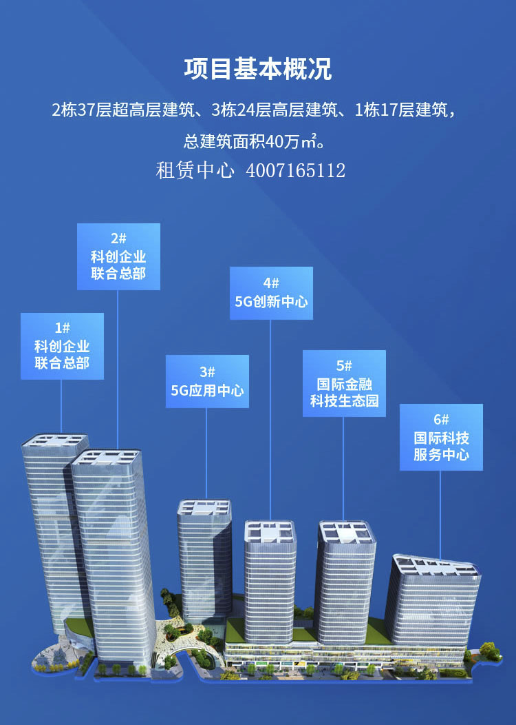 新一代信息技術(shù)產(chǎn)業(yè)園、2棟37層超高層建筑、3棟24層高層建筑、1棟17層建筑、總建筑面積:40萬(wàn)m2