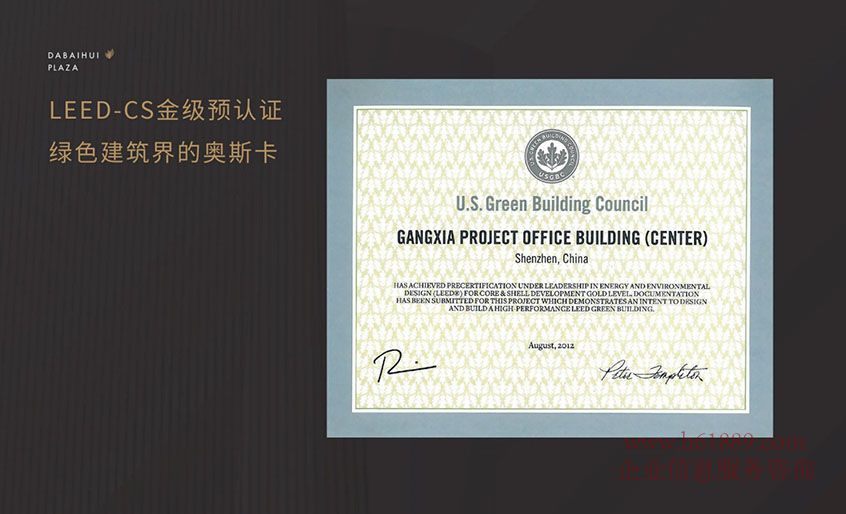 私募證券大廈【大百匯廣場】LEED-CS金級預認證、綠色建界的奧斯卡