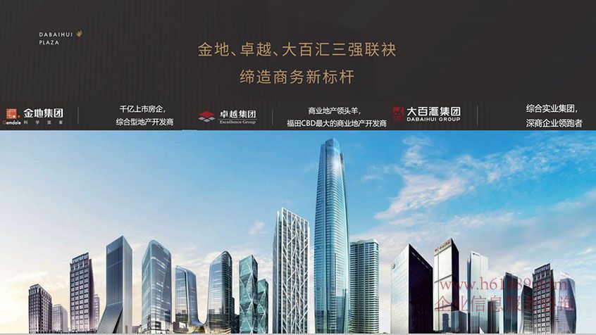 金地、卓越、大百匯三強聯袂、締造商務新標桿:金地集團:千億上市房企、綜合型地產開發(fā)商、卓悅集團、商業(yè)地產領頭羊、福田CBD最大的商業(yè)地產開發(fā)商、大百匯集團:綜合實業(yè)集團、深商企業(yè)領跑者