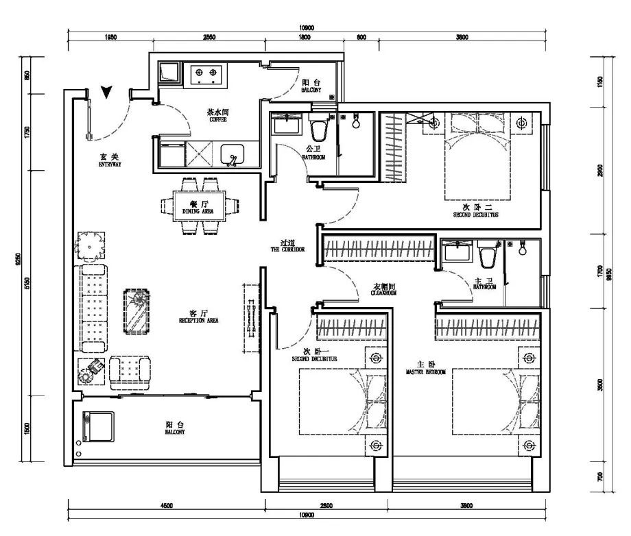 崗廈城 100平米 三房兩廳兩衛(wèi) 戶型圖