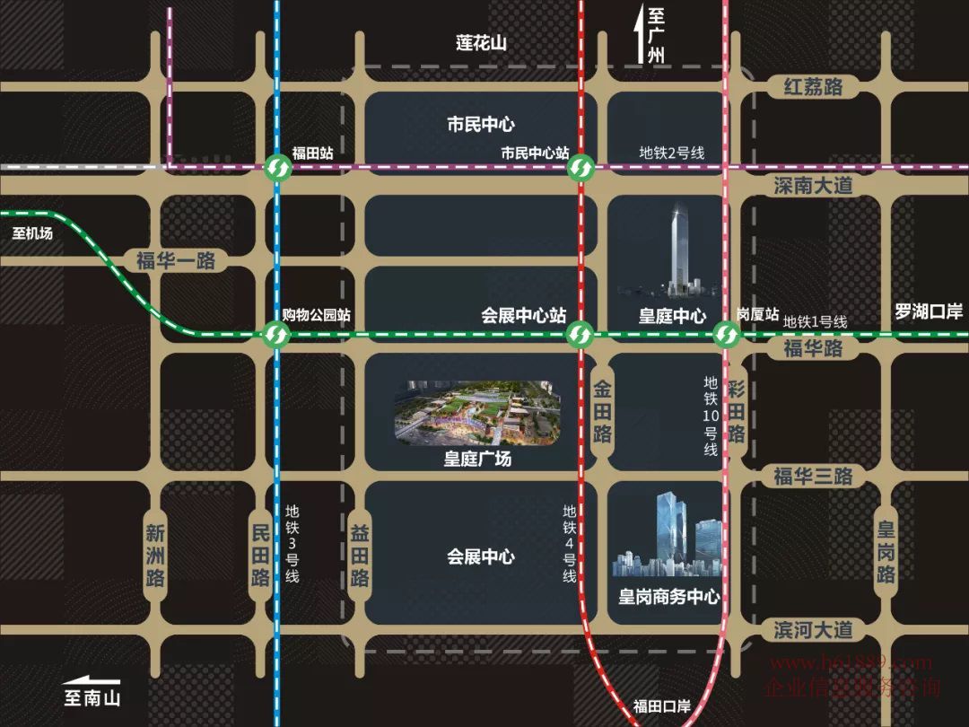 ?皇庭中心【皇庭中心大廈】坐擁黃金交通樞紐一高鐵雙口岸三主干道四地鐵四維交通:接駁全國、高效縱橫商務(wù)主場(chǎng)、高鐵、廣深高鐵福田站、雙口岸、皇崗口岸、福田口岸、巨主干道、廣深高速、濱河大道和深南大道、地鐵1號(hào)線【羅寶線】地鐵4號(hào)線【龍華線】:會(huì)展中心地鐵站