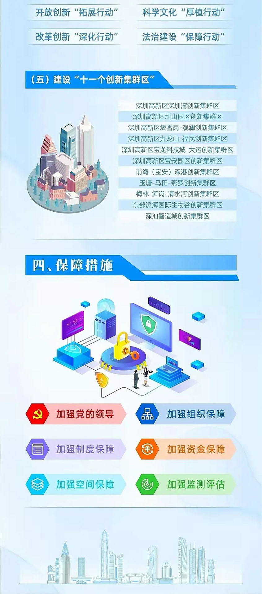 “十四五”時期是深圳全面建成現(xiàn)代化國際化創(chuàng)新型城市的關鍵時期。根據(jù)深圳第七次黨代會提出的提升"五力"打造"五地"的要求,規(guī)劃提出要實施科技創(chuàng)新"十大行動",打造十一個創(chuàng)新集群區(qū),加快建設具有全球影響力的科技和產(chǎn)業(yè)創(chuàng)新高地,是深圳未來5年實施創(chuàng)新驅動發(fā)展戰(zhàn)略的一份綱領性文件