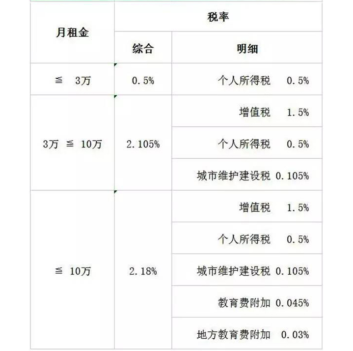 小于: 10萬、租賃稅:2.5%、轉(zhuǎn)租:0.5%