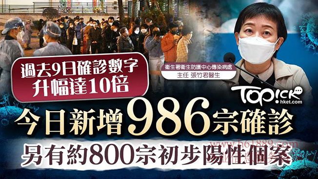 第五波疫情持續(xù)惡化,本港2022年2月(10日)新增986宗確診個案,約800宗初步陽性,未計今日的個案,自去年12月底至今,累計已高達(dá) 5200 宗個案,累計216名病人死亡,最近9日確診數(shù)字更飆升10倍。在近日新增的個案中,有不少人曾于愉景灣廣場工作,該處需要關(guān)閉大清洗。另外,有23名醫(yī)護(hù)人員初步確診或確診,涉及多間醫(yī)院,累計家居檢疫共有1306人,涉571個大廈單位。
